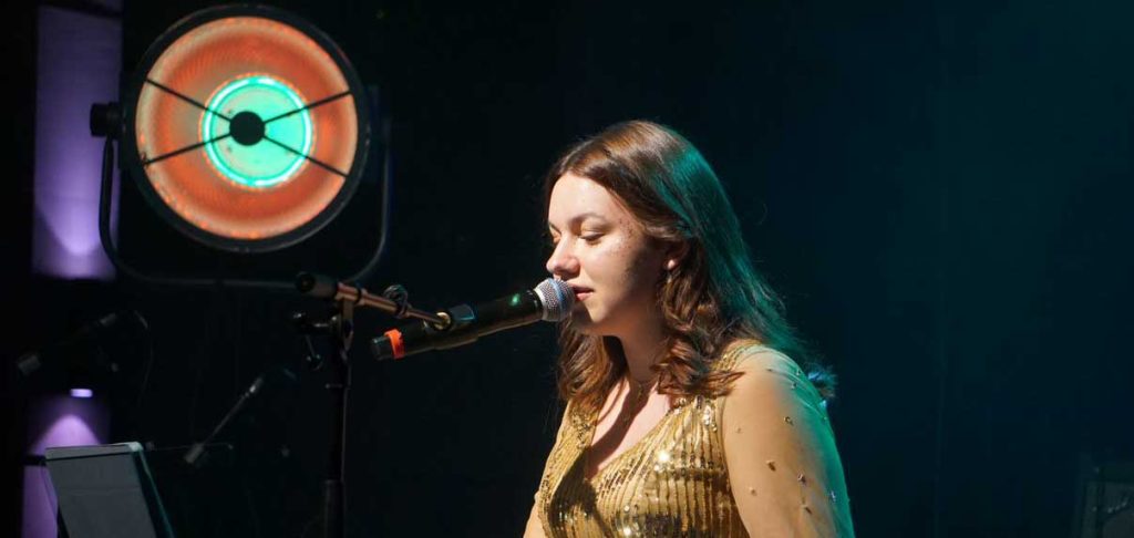 Die erst 19 Jahre alte Larissa Mühlhaus brennt für die Musik – ihrer Leidenschaft geht sie, wenn möglich immer und überall nach. Normalerweise begleitet sich die Sängerin mit der außergewöhnliche Stimme selbst am Piano, freut sich aber schon darauf an diesem Abend eine „richtige Band“ im Rücken zu haben.